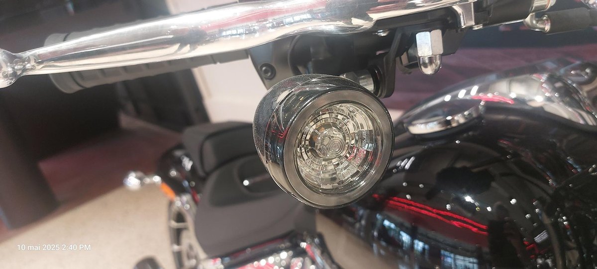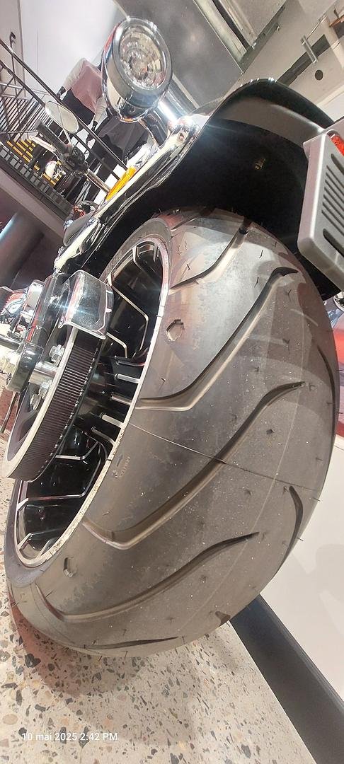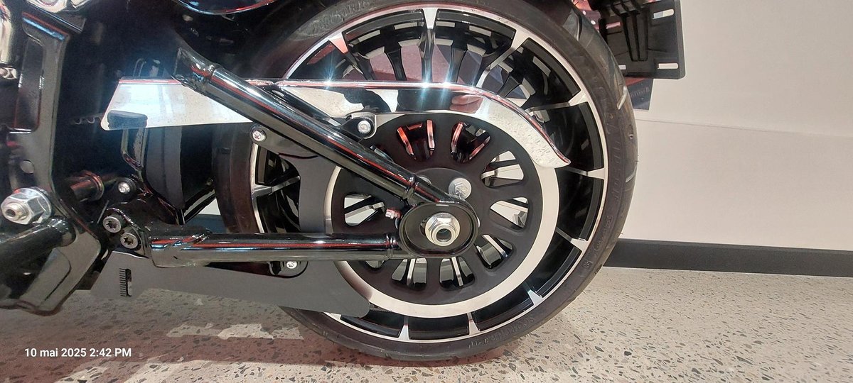 Finished in timeless Vivid Black, this Breakout embodies Harley-Davidson’s legacy of aggressive cruisers with a slammed stance, stretched riding position, and signature 240mm rear tyre.