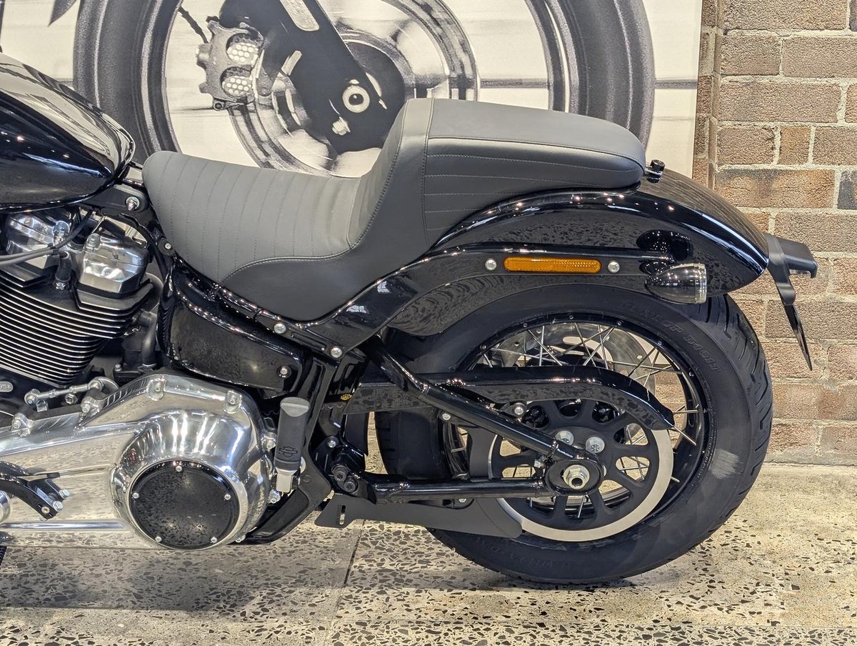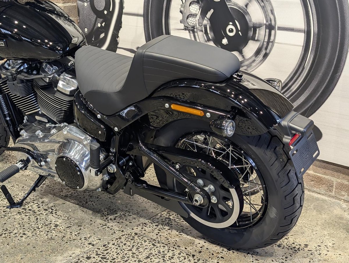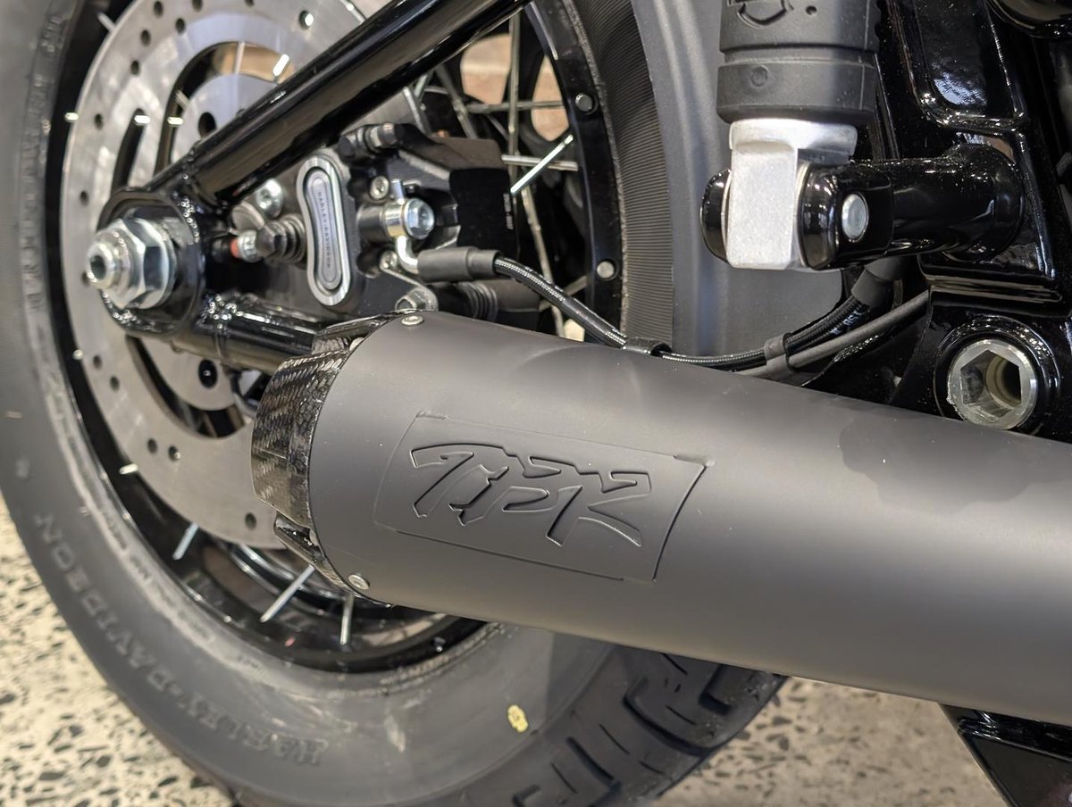 The Street Bob 117 is all about raw performance and attitude, and this shop-built example takes it further with the right upgrades already fitted. The black TBR full exhaust delivers a deep, aggressive note to match the 117ci motor, while the La Pera Kickflip seat adds comfort and style for both solo and two-up riding.