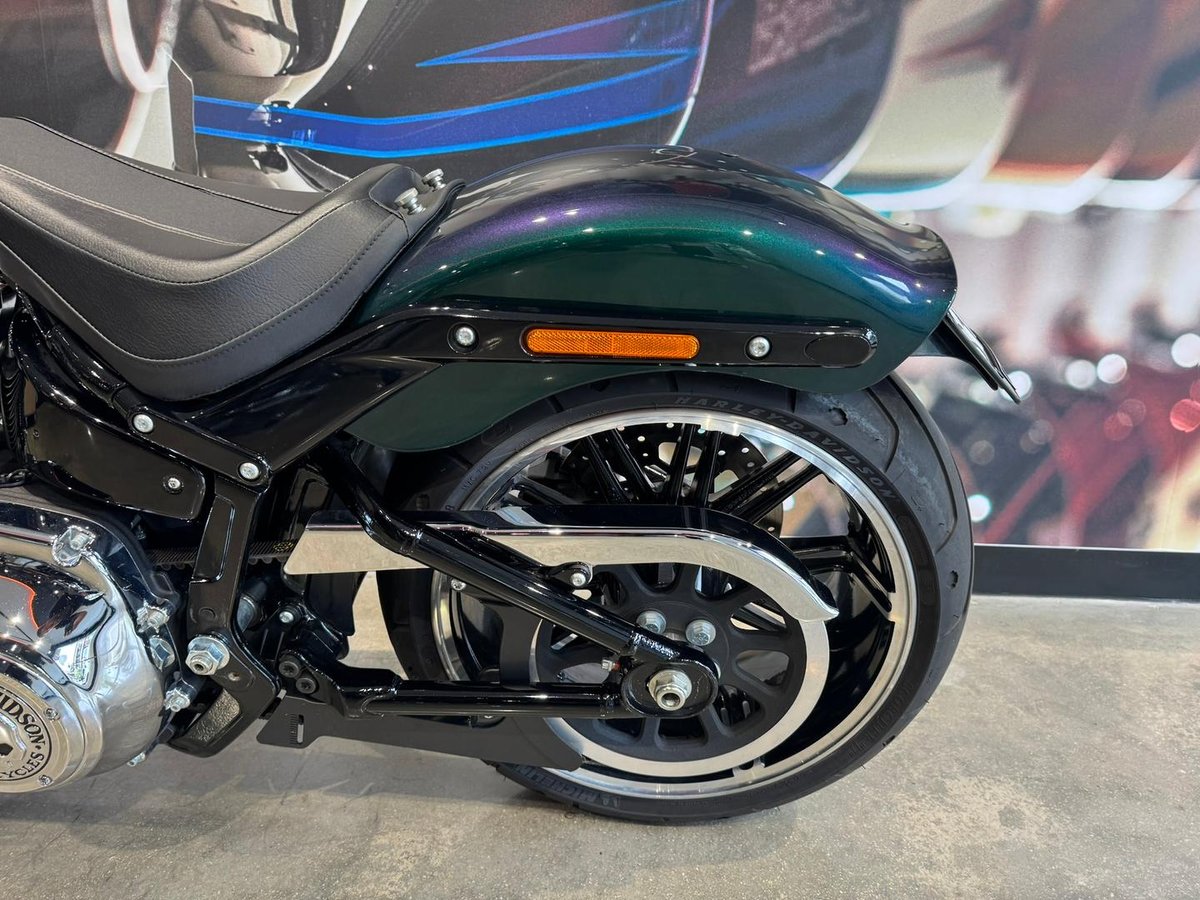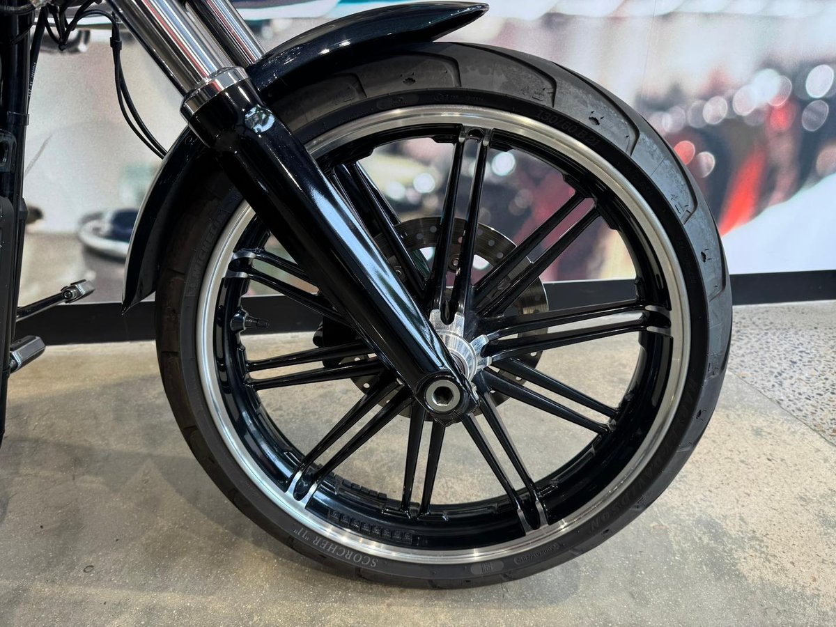 Proudly presenting the Harley Davidson Breakout 114ci. 21" front, 240 rear tyre and loads of attitude. This torque rich American cruiser is HD's answer the the modern chopper and we think they've nailed it. This particular example has a HD Factory Custom paint scheme known as Snake Venom - a colour shifting finish that photos don't do justice. It's also been afforded a set of Burleigh Highballs, Willie G collection accessories, tail tidy, Freedom Sharp Curve Radius pipes and more. This collectors edition will not stick around long. Give our friendly team a call today!