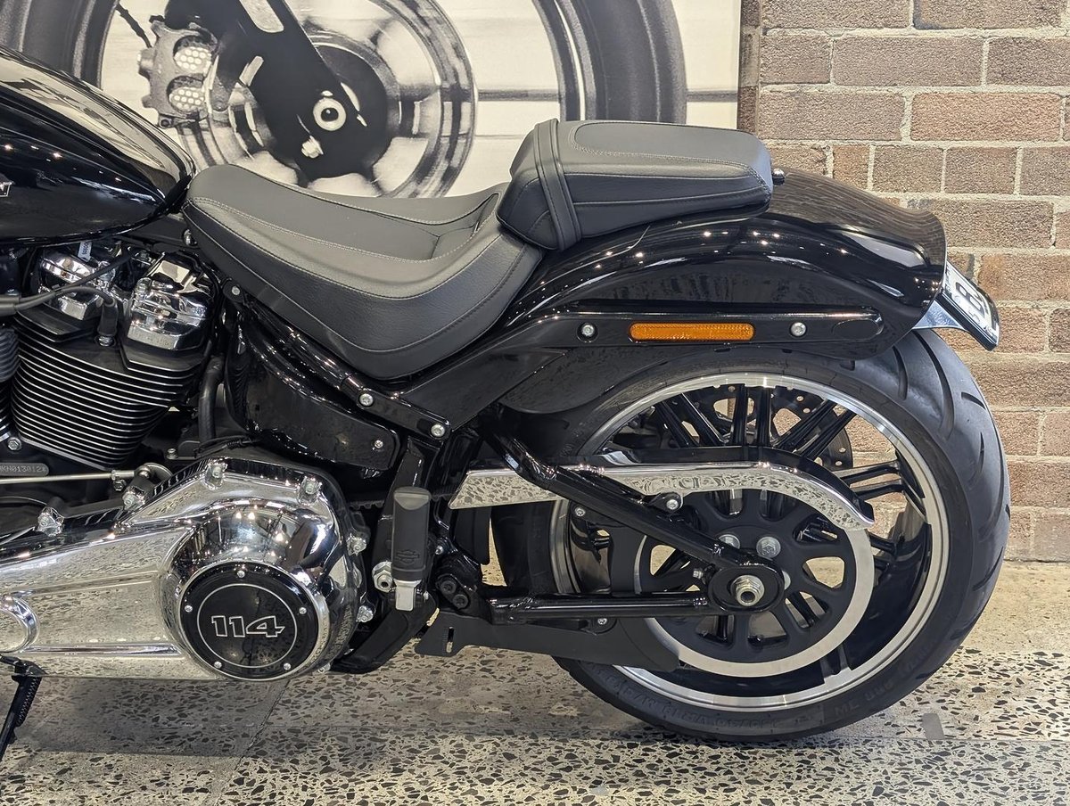 The Breakout 114 is built to turn heads — long, low and packed with classic Harley muscle. With its huge rear tyre and powerful Milwaukee-Eight engine, it delivers strong straight-line performance and unmistakable road presence.