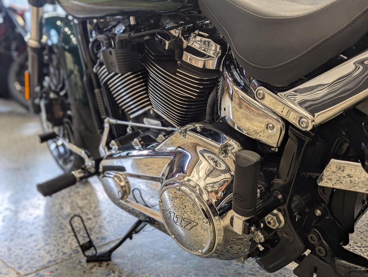 The Breakout 117 is the ultimate factory muscle cruiser — long, low and built to stand out. This example is already tastefully enhanced with a Vance & Hines Radial Sweep exhaust and subtle custom touches that sharpen both its sound and appearance.