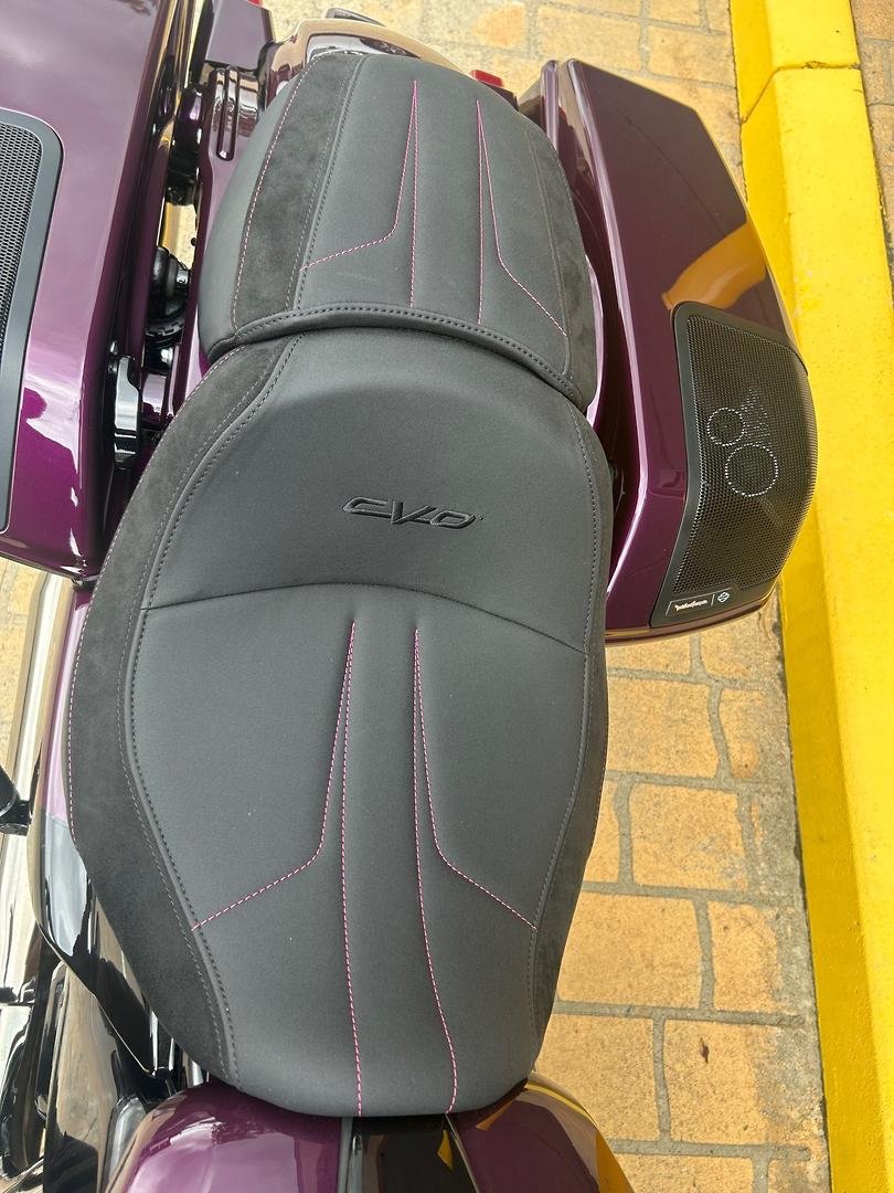 This bike comes with: heated grips, Brembo breaks, spoke wheels, upgraded front and rear sound system, 121 VVT engine, insert panniers, CVO special paint and footboard and grip collection.
