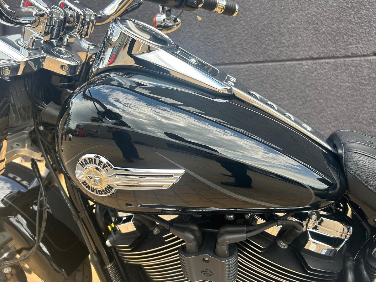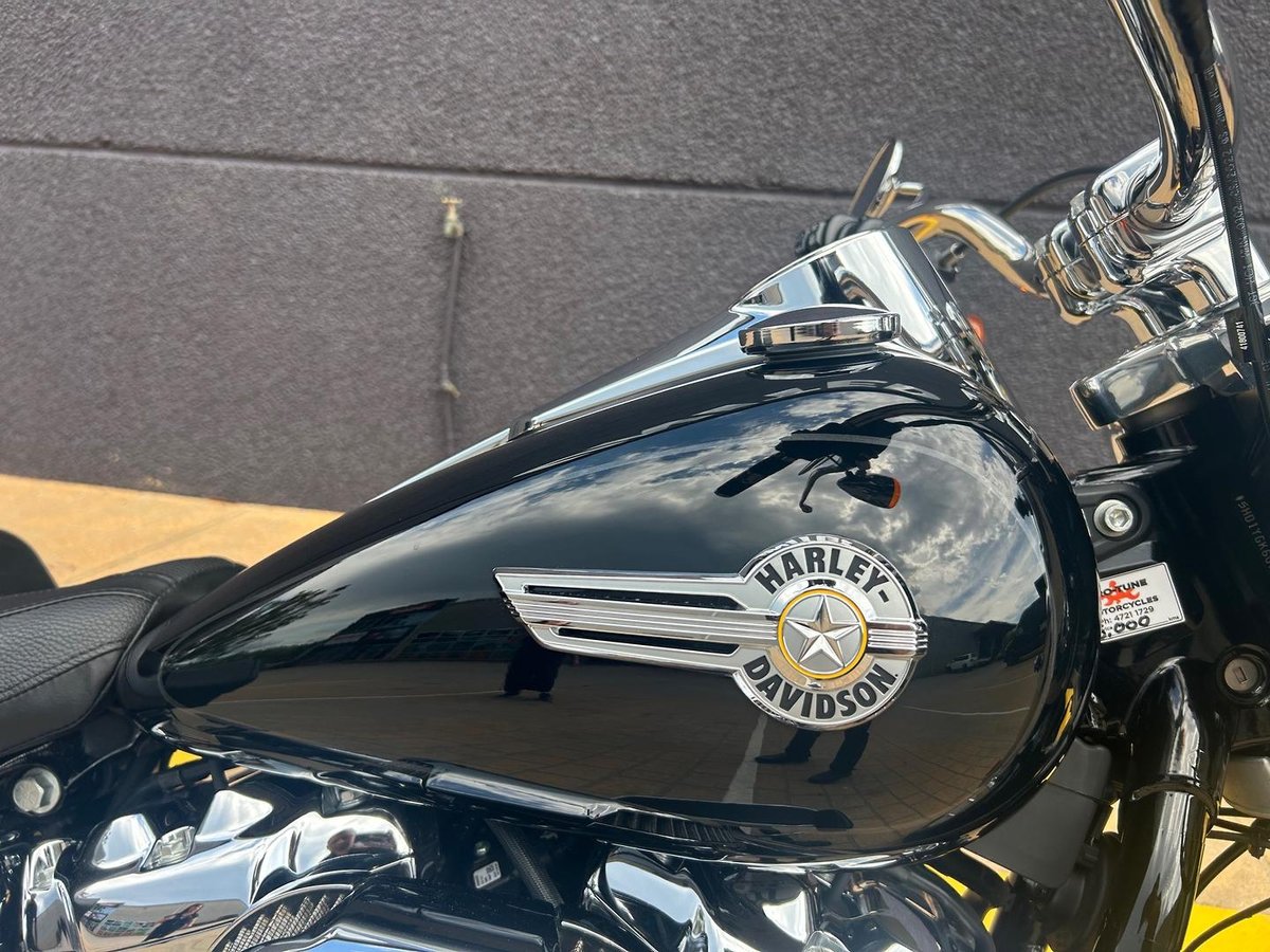 We are proud to present this 2023 Harley-Davidson Fat Boy 114 in a vivid black colour — Just serviced this Fat Boy is a perfect blend of power, performance, and practicality. Designed for riders who crave long-distance comfort without sacrificing style, this performance Soft tail is equipped with the powerful Milwaukee-Eight 114 engine, delivering exceptional torque and acceleration. Also this bike has lots up grades such as: sundowner seat, heated grips collection, backrest, tail tidy, freedom exhaust and paniers. Don't wait until this bike get sold call now!!!