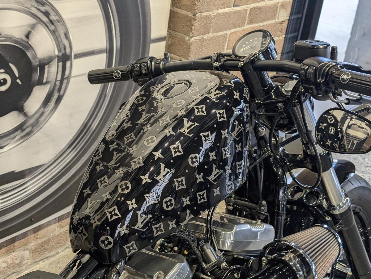 ?Comes with extra tank cover with Louis Vuitton paint scheme as showed in a few photos. Comes off within seconds.