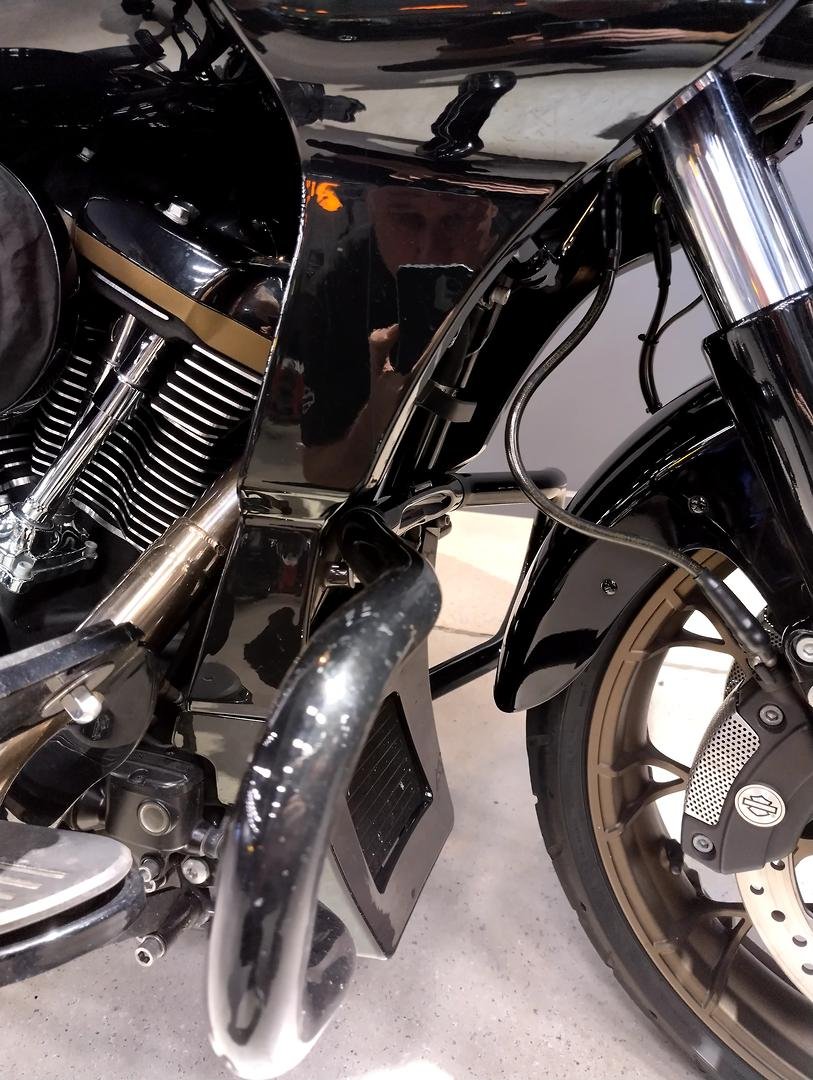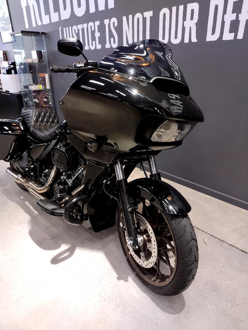 The 2022 Harley-Davidson Road Glide ST — the sport-touring bagger motorcycle Harley introduced in the 2022 model year fitted with the 117ci motor gives the ST a sportier edge. Fitted with a shorter front mud guard and short bags make the ST lighter for more aggressive riding.