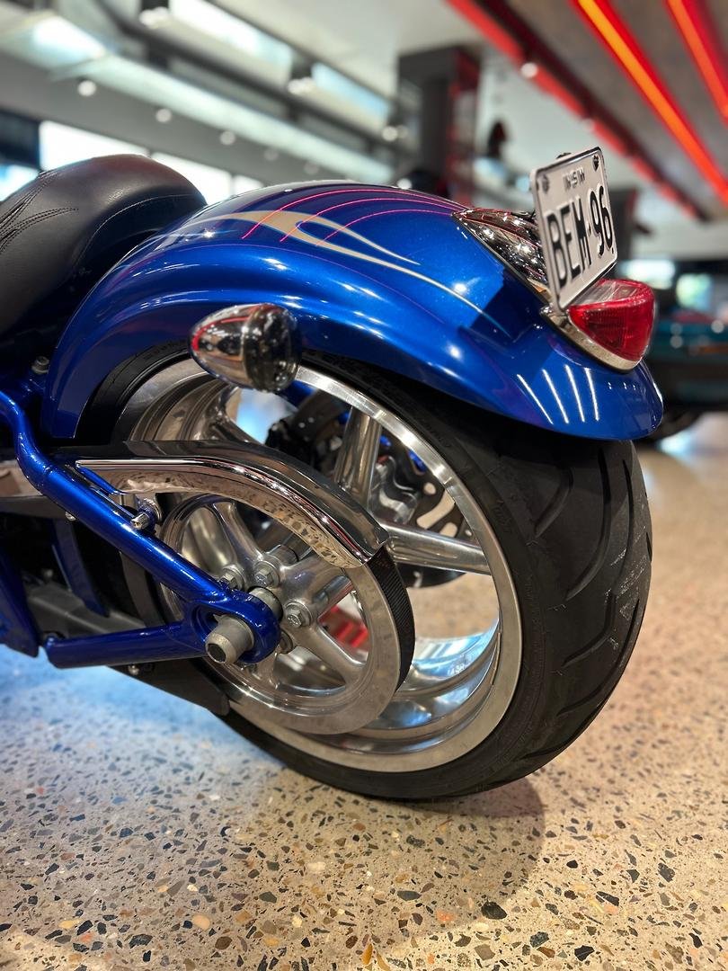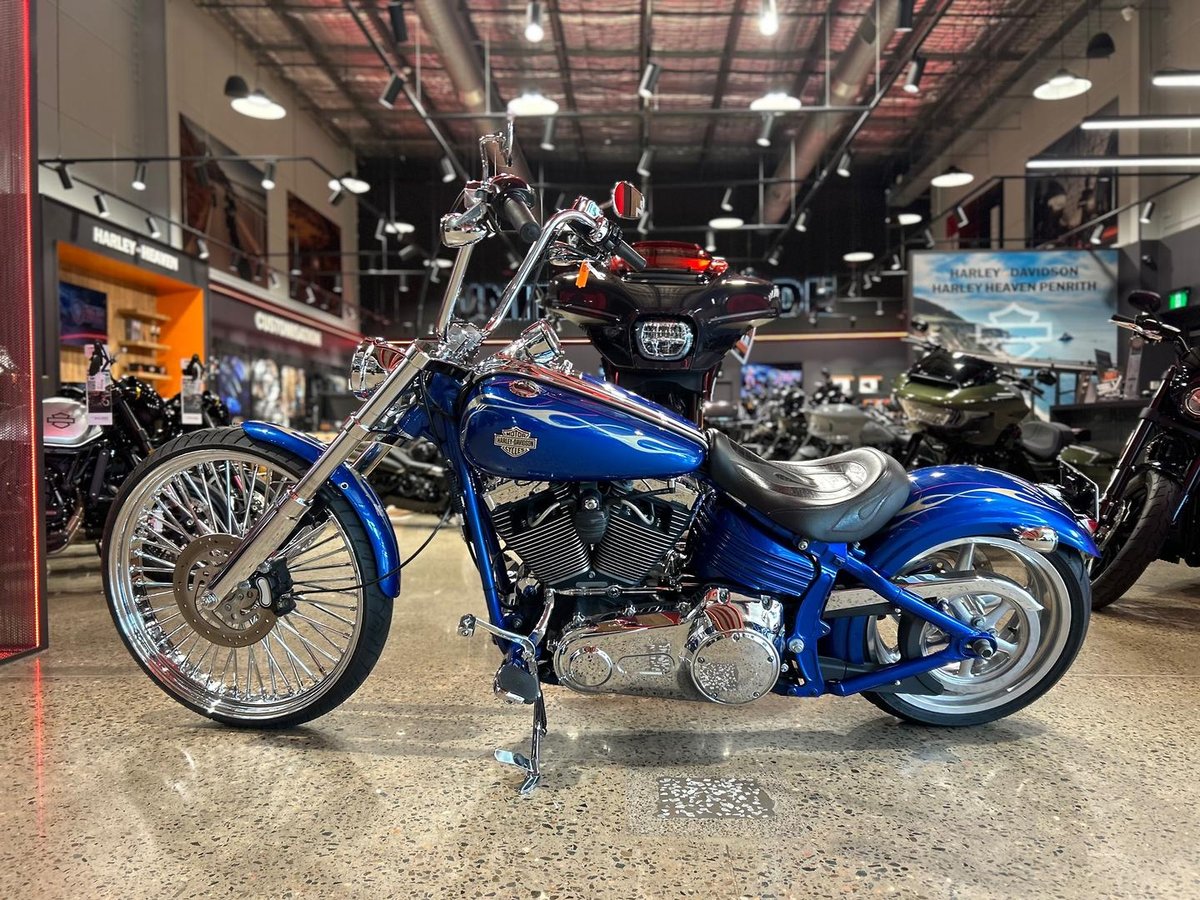 We are proud to present this 2009 Harley-Davidson Rocker C 96 in a Flame Blue Deluxe colour under 40,000 km's, 26" front wheel, wide glide front end, apes, stage 1 with V&H exhaust, custom seat fitted.