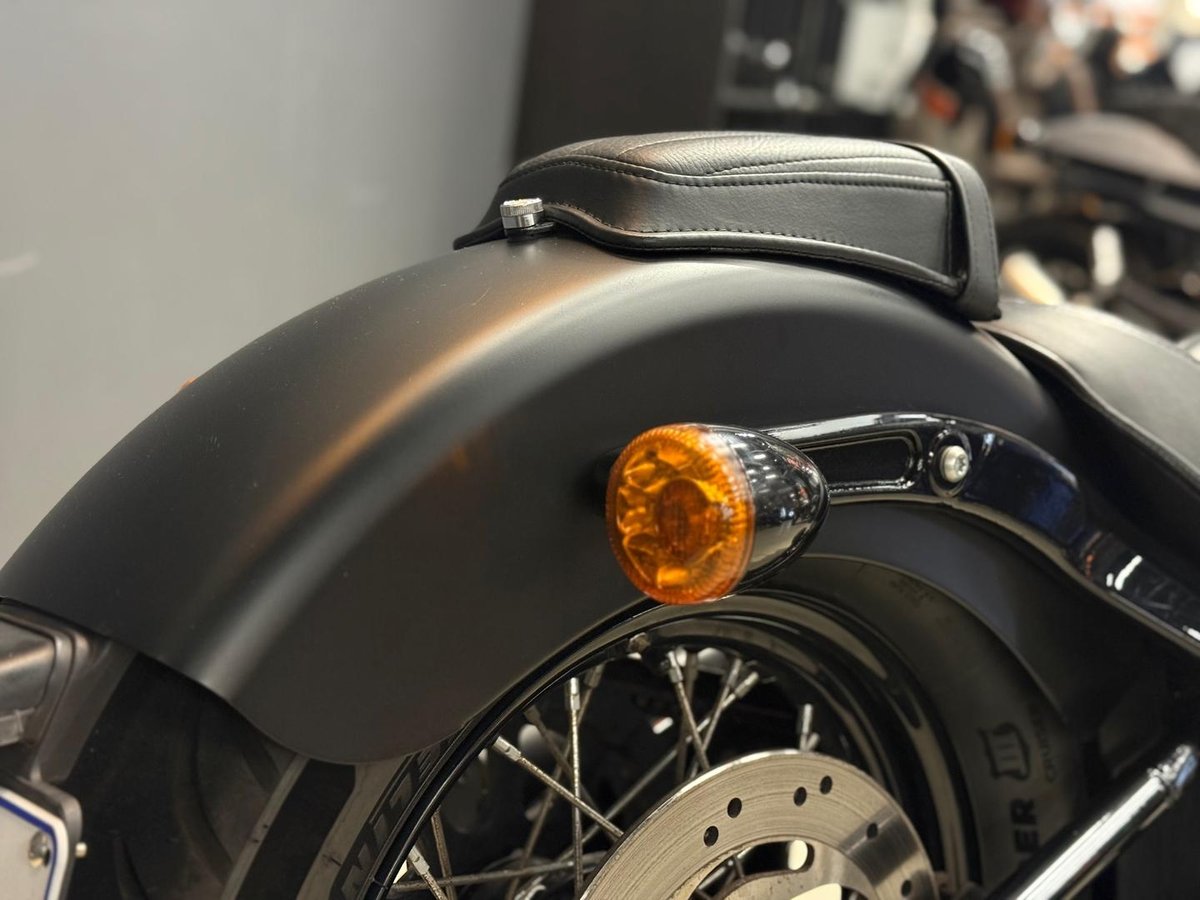The Harley-Davidson Softail Slim is a stripped-down cruiser built to echo old-school bobber styling, but with modern reliability. This timeless design turns heads wherever you go.